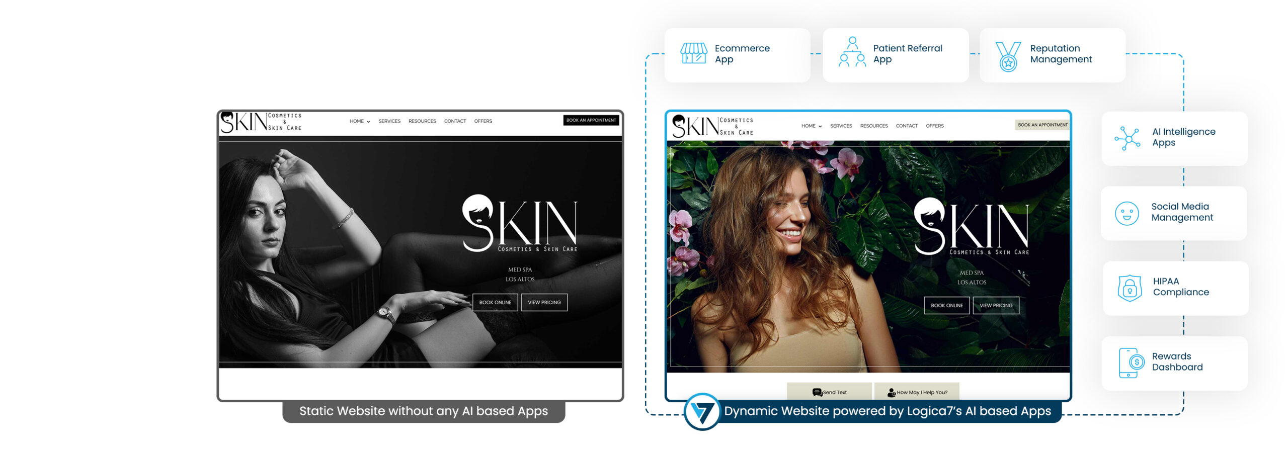 Imagine you have a very nice looking attractive website, however you want to improve your patient acquisition build upon existing patient information in your EMR (Electronic Medical Records system). LogicalApex.com provides strategies, expertise, human experts and AI based apps that can help your practice. LogicalApex improves new patient acquisition and retention of existing patients using HIPAA compliant and AI based Intelligent apps that can turn your static website and Google My Business presence into a Patient acquisition funnel. Our pricing starts at $300/month for common applications and for most practices starts at $400/month. This includes 5-Star customer service, set up of apps and your service and no start-up fees. Contact us for a Demo.